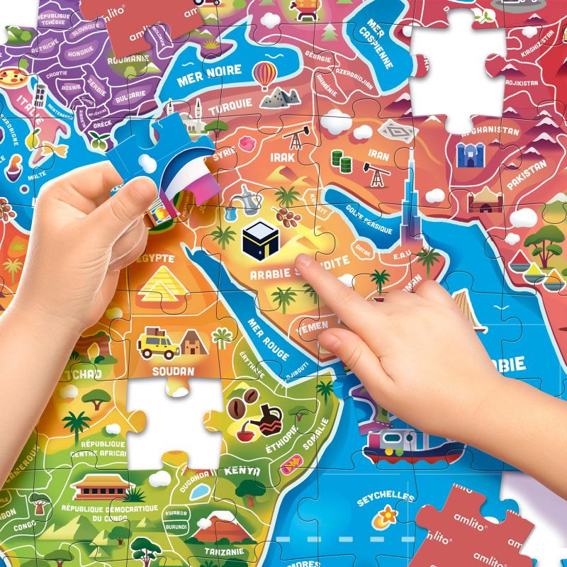 Offrez à vos enfants un tour du monde fascinant avec ce puzzle de 150 pièces représentant une carte du monde colorée et détaillée. Conçu pour être à la fois ludique et éducatif, ce puzzle permet aux enfants de découvrir les continents, les océans, et de nombreux détails géographiques, tout en s'amusant. Une excellente façon d’éveiller leur curiosité et d'élargir leur compréhension du monde qui les entoure.