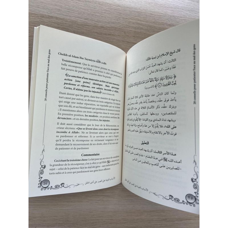 C’est un livre sublime Allâhumma baarik. Toute personne devrait l’avoir afin de se remettre en question et de bi idni Llah par cette cause renforcer sa patience face aux tords des gens à son égard. Cette question (la patience) est d’une grande importance et nécessite qu’on y prenne grand soin alors n’hésitez absolument pas.